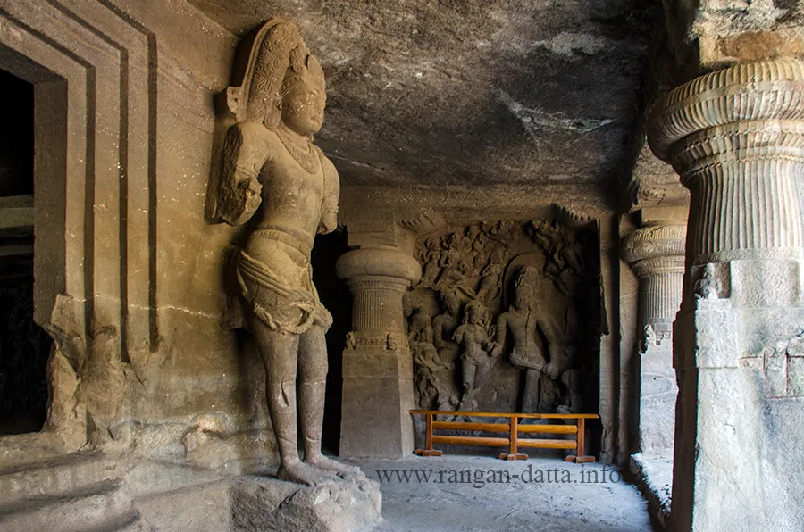 To fully appreciate the Trimurti sculpture Elephanta Caves complex, visitors pass through a vast pillared hall designed to slow movement and sharpen focus. The architecture encourages a gradual approach, allowing anticipation to build before the sculpture reveals itself.